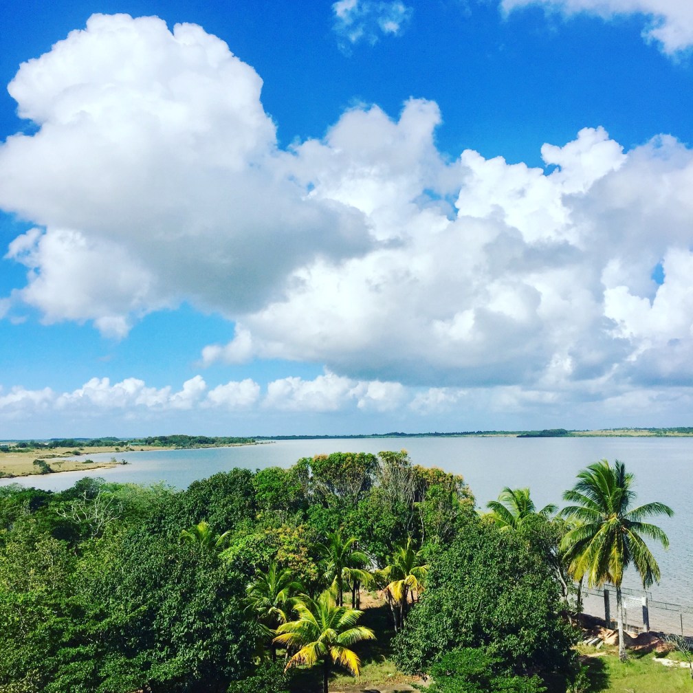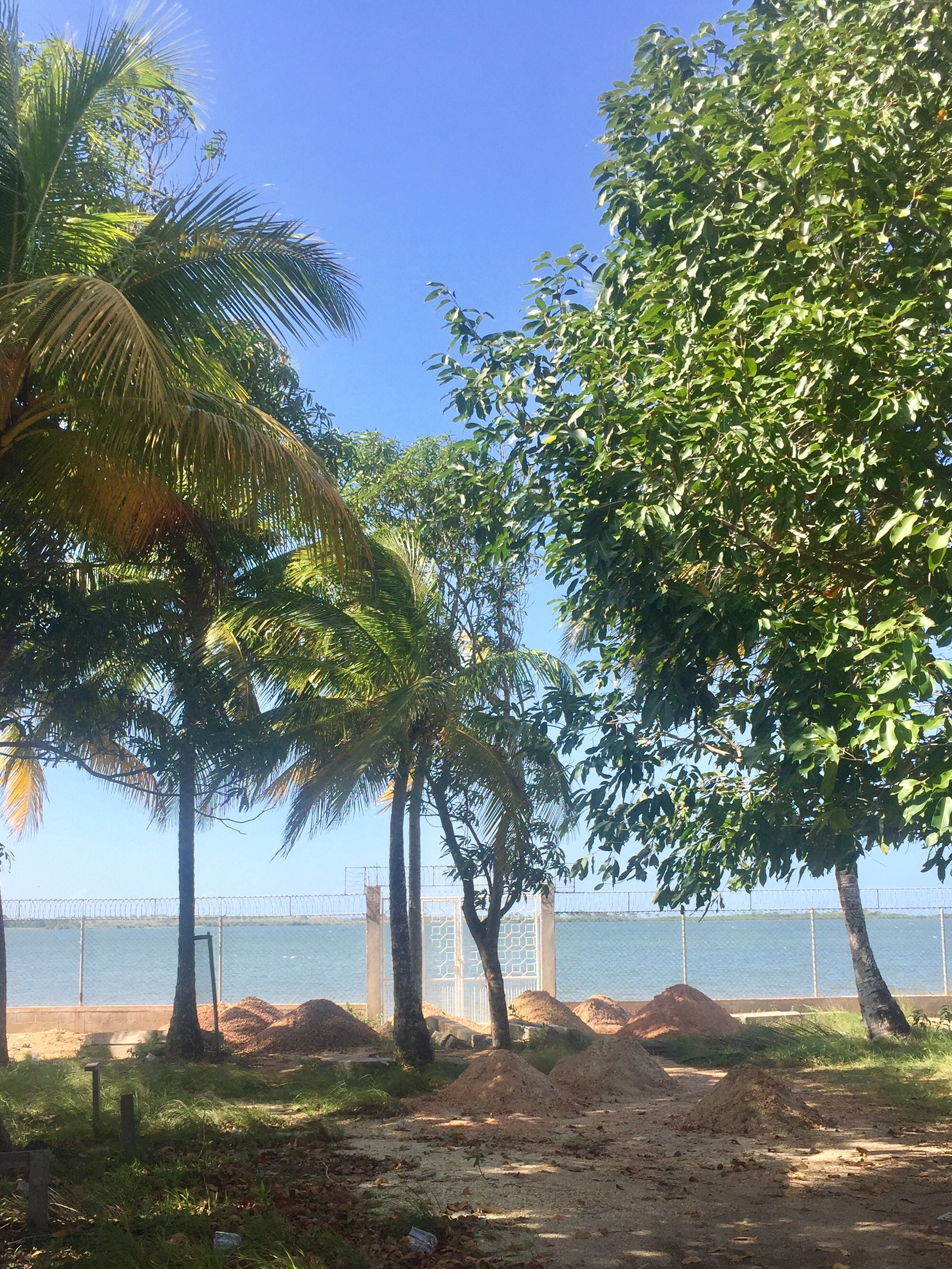 Elsewhere on the property men were laying block in preparation for a level concrete floor to be poured in the bathroom and pila areas, while Winsis and Herman were busy locating the heights of the house columns in order to have the house floor level with the existing bathroom roof. Still other workers continued to pick up garbage around the property as it is a work zone that had gotten out of control. As you can see by the pictures it was a beautiful day (early on).
